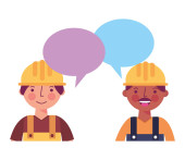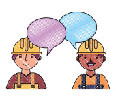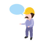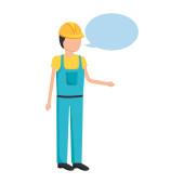 mężczyzna robotnik z kask, kombinezon dymek