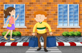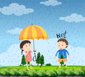 Młody chłopak z parasolem, spacery w deszczu ilustracja