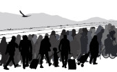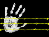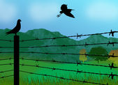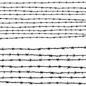 Drutem kolczastym sylwetkami na białym tle, ilustracji wektorowych