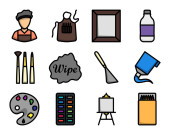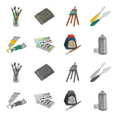 Zdjęcie "Malarz i rysunku monochromatyczne ikony w kolekcja zestaw do projektowania. Akcesoria Artystyczny symbol web czas ilustracja wektorowa." może być wykorzystywane do celów osobistych i komercyjnych zgodnie z warunkami zakupionej licencji Royalty-free. Obraz jest dostępny do pobrania w jakości wysokiej rozdzielczości do 5760x3840.