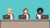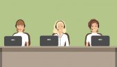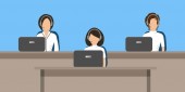 Zdjęcie "Bannery pracowników call center. Usługi pomocy technicznej. Młodych mężczyzn w słuchawkach siedział przy biurku. Ludzie ikony. Ilustracja wektorowa." może być wykorzystywane do celów osobistych i komercyjnych zgodnie z warunkami zakupionej licencji Royalty-free. Obraz jest dostępny do pobrania w jakości wysokiej rozdzielczości do 5760x3840.