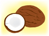 Ikona kolor glifów kokos. Sylwetka symbol na białym tle bez konturu. Ujemnej. Ilustracja wektorowa
