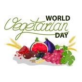 Świąteczny godło z warzywami na dzień wegetariański świat.