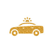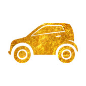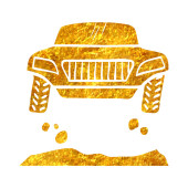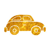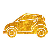 Ikona Skarbonka samochód w złoty brokat tekstury na białym tle