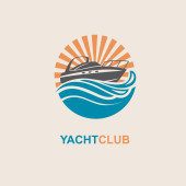 Zarys retro godło jachtu. Hipster logo jachtu. Koncepcja Wynajem łodzi
