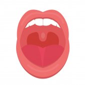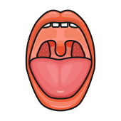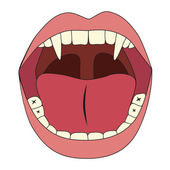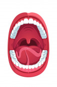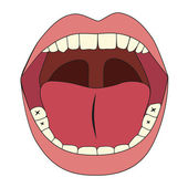 Ludzkie usta otwarte strukturalnych zęby, język i języczka