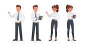Zdjęcie "Płci męskiej i żeńskiej nauczyciela stałego. Pracownik szkoły, universirty lub kolegium w lekcji. Kształcenia zawodowego i koncepcja uczenia się. Wektor płaski ilustracja kreskówka na białym tle" może być wykorzystywane do celów osobistych i komercyjnych zgodnie z warunkami zakupionej licencji Royalty-free. Obraz jest dostępny do pobrania w jakości wysokiej rozdzielczości do 5760x3840.