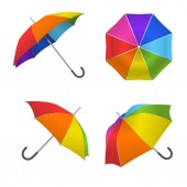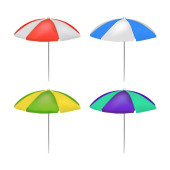 Ustawić realistyczny szczegółowe 3d makieta biały parasol pusty szablon. Wektor