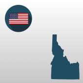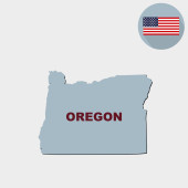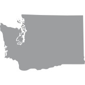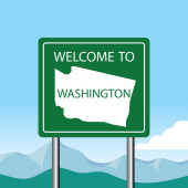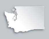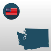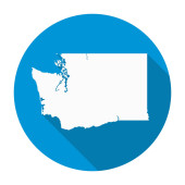 Mapa stanu USA w Waszyngtonie, na niebieskim tle. Nazwa stanu
