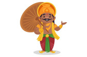 Onam celebrowanie. Król Mahabali gospodarstwa parasol, postać z kreskówki wesoły. Zadowolony Onam święto w Kerala. Ilustracja wektorowa