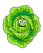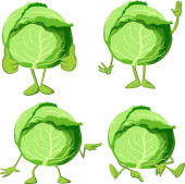 Kapusta zielony kreskówka na białym tle na białym tle z śmieszne przydatne warzyw