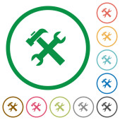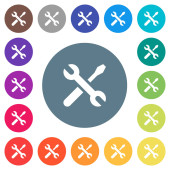Klucz i młot płaski, biały ikony na okrągły kolor tła. 17 zmiany koloru tła są wliczone w cenę.