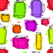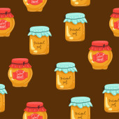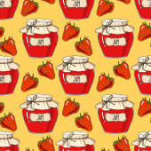 Dżem ze słoików wzór. Ilustracja wektorowa ręcznie rysowane tła w żółty i pomarańczowy.