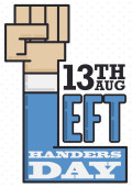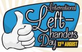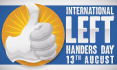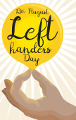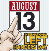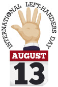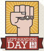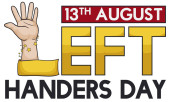 Design w stylu płaski z lewa pięść wychodzi z napisem pozdrowienie wiadomość dla lewo i praworęcznych święto w 13 sierpnia.