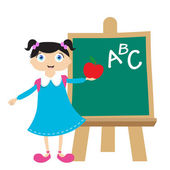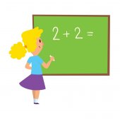 Uczennica w pobliżu tablica don t znać odpowiedź. EPS 10.