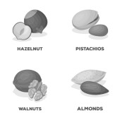 Różne rodzaje orzechów kreskówka ikony w kolekcja zestaw do projektowania. Nakrętka ilustracja jedzenie wektor symbol zasobów sieci web.