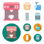 Typy urządzeń gospodarstwa domowego kreskówka ikony w kolekcja zestaw do projektowania. Kuchnia wyposażenie wektorowego symbol zasobów sieci web.