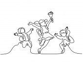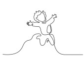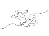 Jednego ciągłego rysowania linii. Szczęśliwy chłopców uruchomiona