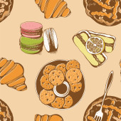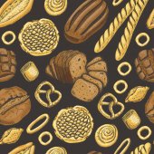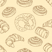 Piekarnia, słodkie pieczywo wektor wzór, tło wektor wyciągnąć rękę
