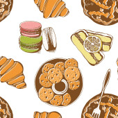 Piekarnia, słodkie pieczywo wektor wzór, tło wektor wyciągnąć rękę