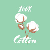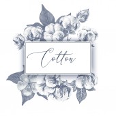 ilustracja wektorowa ręcznie rysowane kwiaty bawełny z tekstem na różowym tle