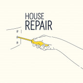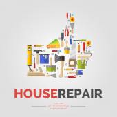 Narzędzia ręczne do domu Remontowo -budowlane. Liniowy dom Naprawa plakat.