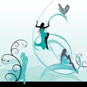 Dziewczyna taniec wektor. Sylwetka taniec dziewczyna na streszczenie tło