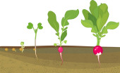Rzodkiewka cyklu życia. Kolejne etapy wzrostu, z nasion, kwitnienie i owocowanie roślin. Roślin wykazujących strukturę głównego poniżej poziomu terenu na warzyw patch