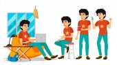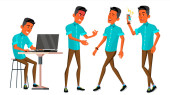 Teen Boy wektor. Zestaw do tworzenia animacji. Emocje na twarzy, gestów. Pozytywną osobą. Animowany. Dla sieci Web, broszura, projekt plakatu. Ilustracja kreskówka na białym tle