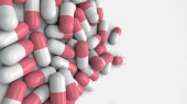 Kupie kapsułki biały i pomarańczowy medycyna na białym tle. Pojęcie medyczne, opieka zdrowotna lub aptece. ilustracja renderowania 3D