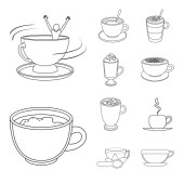 Różne rodzaje kawy konturu ikony w kolekcja zestaw do projektowania. Picie kawy wektorowego symbol zasobów sieci web.