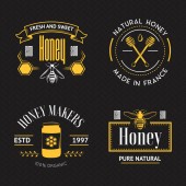 Wektor miód logo i ikony na ciemnym tle dla produktów miodu, pasieki i Pszczelarstwo marki i tożsamości