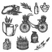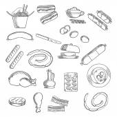 Ręcznie rysowane elementy mleczne mleka, sera, masła i innych produktów ilustracja wektorowa