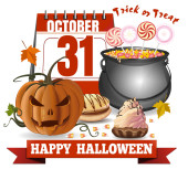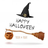 Zbliżenie Halloween czarownica nogi w butach i z miotły. Wesołego halloween. Cukierek albo psikus. Wektor ilustracja na białym tle