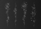 Podwodne musująca powietrza, wody lub tlenu pęcherzyki na czarnym tle. Musujący napój. Gazowanych błyszczy w morze, akwarium. Szampana. Soda pop. Tekstura wektor podmorski.