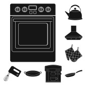 Kuchnia wyposażenie monochromatyczne ikony w kolekcja zestaw do projektowania. Kuchnia i akcesoria symbol web czas ilustracja wektorowa.