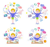 Zestaw kobieta trzymając dziecko z cyfrowych urządzeń, takich jak smartfony. Tam są działania, które wyrażają emocje. Jest to sztuka wektor, więc jest to łatwe do edycji.