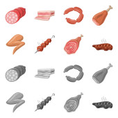 Zdjęcie "Na białym tle obiekt ikony mięsa i szynka. Zestaw mięsa i gotowanie Stockowa ilustracja wektorowa." może być wykorzystywane do celów osobistych i komercyjnych zgodnie z warunkami zakupionej licencji Royalty-free. Obraz jest dostępny do pobrania w jakości wysokiej rozdzielczości do 5760x3840.