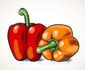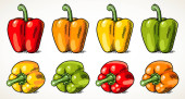 Ustawić na białym tle świeże papryki słodkiej. Warzywo projektowania elementów kolekcji dla farm market, wegetariańskie jedzenie przepis. Ilustracja wektorowa nad białym.