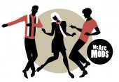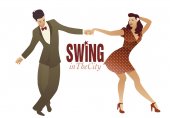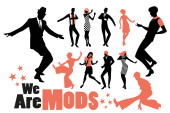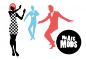 Eleganckiej sylwetki ludzi sobie ubrania z lat sześćdziesiątych taniec 60s stylu na białym tle