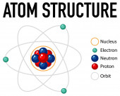 Prosty model struktury atomu z elektronów krążących wokół jądra trzy protonów i neutronów.