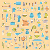 Wzór z przybory kuchenne, narysowałem wina i przybory kuchenne abstrakcyjnie,