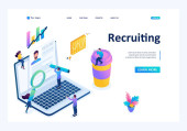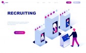 Nowoczesna, Płaska konstrukcja koncepcji biznesowych rekrutacji dla witryny sieci Web i rozwoju witryny komórkowej. Szablon strony docelowej. Pracodawca, biznesmen zasobów, prezentacja pracy hr. Ilustracja wektorowa.