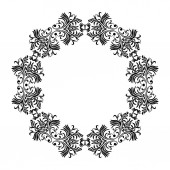 Klatek sztuki dekoracyjne wiersza szablonu projektu. Elegancki element do projektu, miejsce dla tekstu. Granica kwiatowy czarną obwódką. Ilustracja wektorowa koronki na zaproszenia i kartki z życzeniami