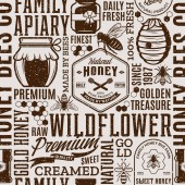 Wzór etykiet i opakowań miodu dla pasiek i produktów pszczelarskich, pasmanterii i tożsamości. Ilustracja miodu wektorowego.