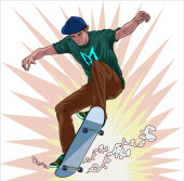 Deskorolka sportowiec trick, rysunek. Ilustracja nastolatek gry deskorolka. Sport wektor ikona. Wektor clipart płaski.