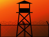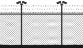 Zdjęcie "Więzienia, punkt kontrolny, ochrony terytorium, Strażnica, granica państwowa, wieża, bazy wojskowej. Kamera ulica na słupku. Drut kolczasty płot drutu siatki, sylwetka wektor" może być wykorzystywane do celów osobistych i komercyjnych zgodnie z warunkami zakupionej licencji Royalty-free. Obraz jest dostępny do pobrania w jakości wysokiej rozdzielczości do 5760x3840.