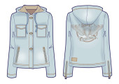 Zdjęcie "Ciemno niebieska kurtka z kapturem, z zamknięciem na zamek błyskawiczny, kieszenie i pogrubienie haftem na plecach" może być wykorzystywane do celów osobistych i komercyjnych zgodnie z warunkami zakupionej licencji Royalty-free. Obraz jest dostępny do pobrania w jakości wysokiej rozdzielczości do 5760x3840.