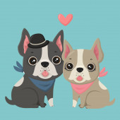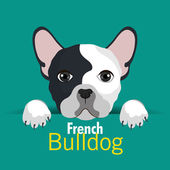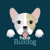 Wektor ikona pies rasy Buldog francuski. Szczeniak Buldog w różowe okulary. Buldog francuski beżowy kolor