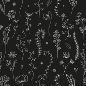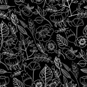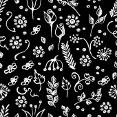 Floral ręka narysowanej linii bezszwowe wzór na czarny